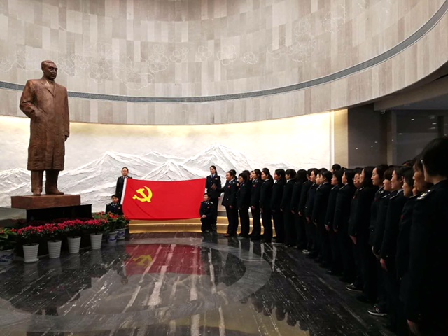 3月5日,优秀女税干代表早早来到了周恩来同志纪念馆,参加淮安市纪念周恩来总理诞辰120周年活动,深切缅怀周总理的光辉业绩和卓著功勋。当日上午,在这里隆重举行了向周恩来同志塑像敬献花篮仪式。省委常委、组织部部长郭文奇及淮安市各界代表2000多人参加了隆重的纪念活动。在中共淮安市委书记姚晓东的带领下,庄严宣誓:“高举习近平新时代中国特色社会主义思想伟大旗帜, 践行周恩来精神,建好周总理家乡,不忘初心,牢记使命,锐意进取,砥砺前行,奋力谱写新时代崛起江淮的精彩篇章,为实现中华民族伟大复兴中国梦而努力奋斗!”