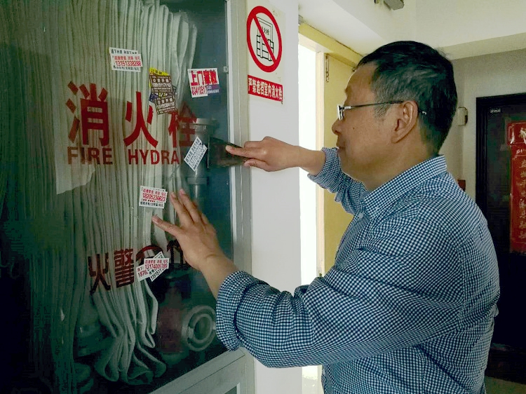 4月21日的双休日期间,淮安地税局动员全体党员干部,在所居小区开展公益劳动,清楼道、清垃圾、清广告、清烟斗,确保所居住的小区及周边干净整洁,为创卫贡献力量。(图为:市地税局第四党支部党员正在清理小广告)